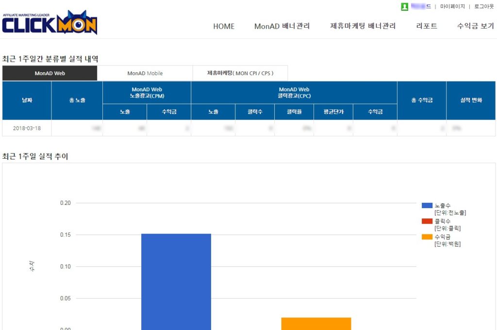 다음은 클릭몬에서 제공되는 리포트와 수익금 확인 및 신청에 관하여 간략하게 알아 보겠습니다.