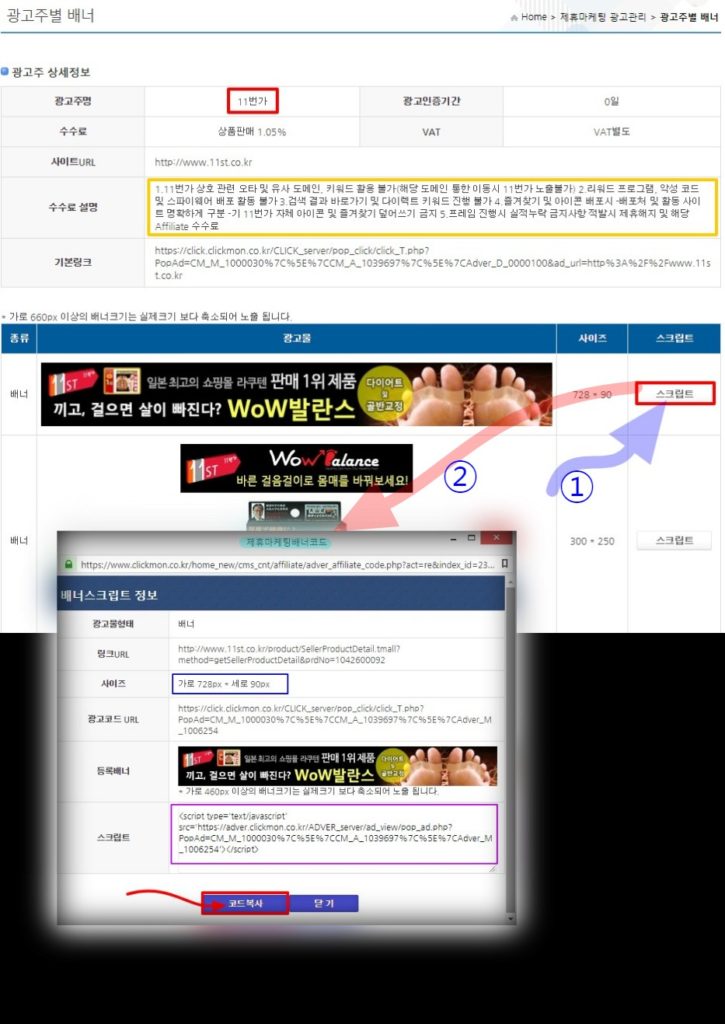 • 원하시는 형식의 스크립트를 복사하기 하셔서 회원님의 웹사이트나 블로그에 붙여넣기 하시면 배너가 노출이 됩니다.