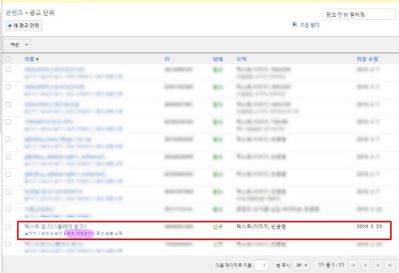좀 전에 새로 만든 광고가 전체 [광고목록]에 표시되는 것을 확인할 수 있습니다.