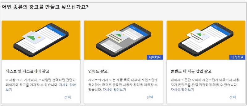 위 자동광고의 유형을 참고로 [광고 종류]를 선택합니다.