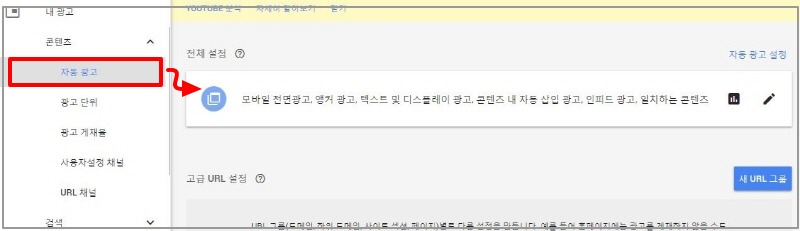 내 광고중 최근에 새로 추가된 자동광고를 볼수 있는데 간단하게 아애와 같은 설정을 함으로써 전체 사이트에 걸쳐 게재를 할 경우 사용되는 광고입니다.