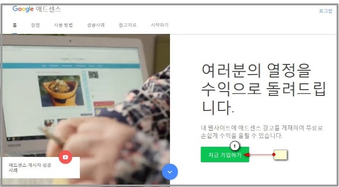 제일 먼저 해야 할 단계인 구글 [애드센스에 가입하기] 입니다.